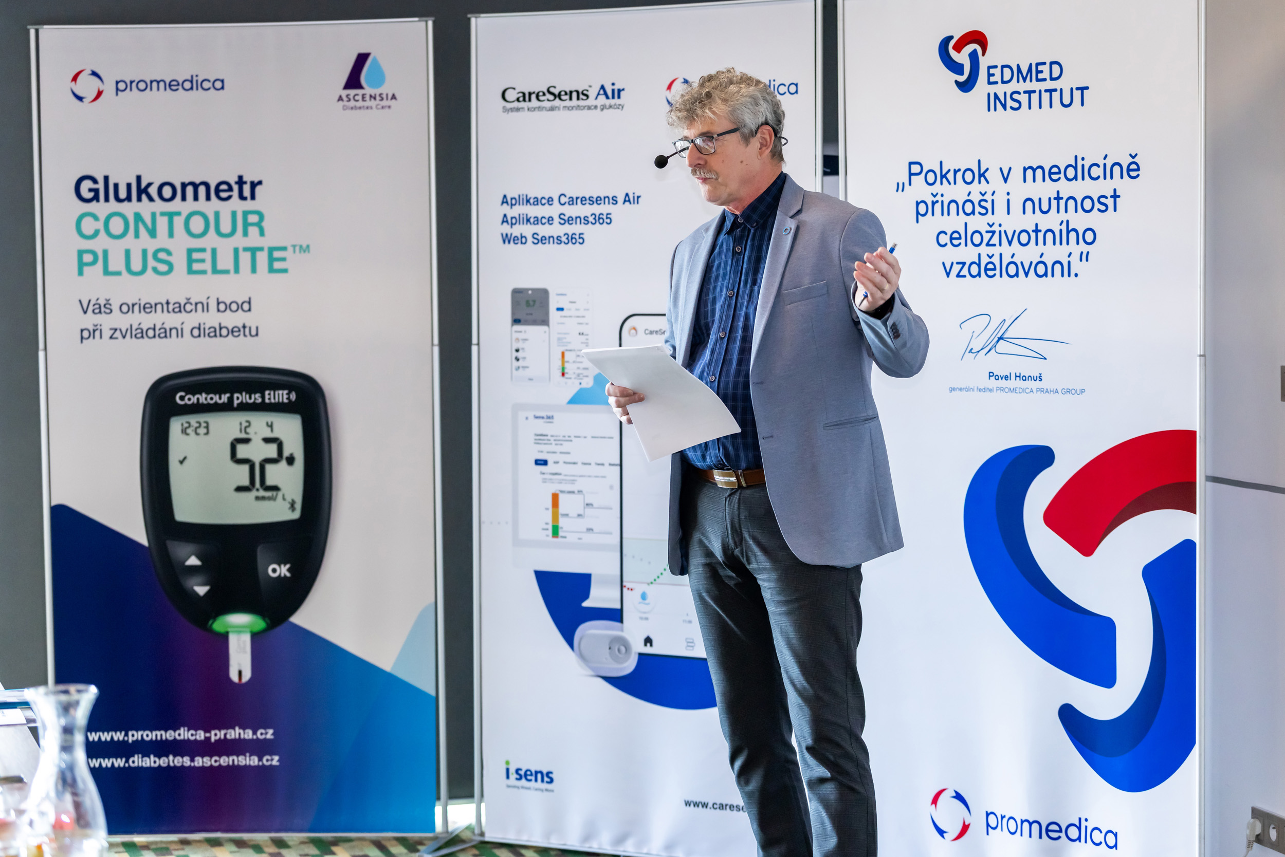 Další část programu se věnovala limitům klasického měření a přínosu kontinuální monitorace glykémie (CGM), včetně představení systému CareSens Air. Zaznělo také, jak důležitou roli hraje sestra při edukaci pacienta a jeho dlouhodobé spolupráci na léčbě.